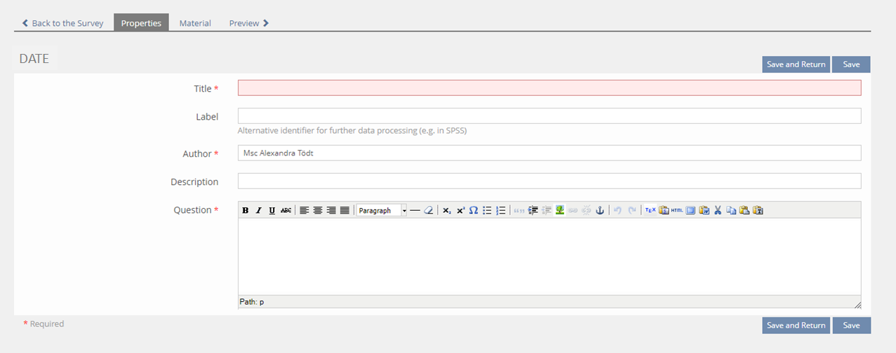 - New edit question form for question type "Date"