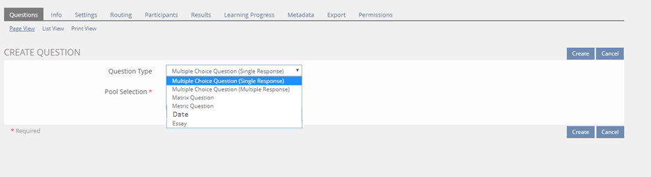 - Amend "create Questions" form