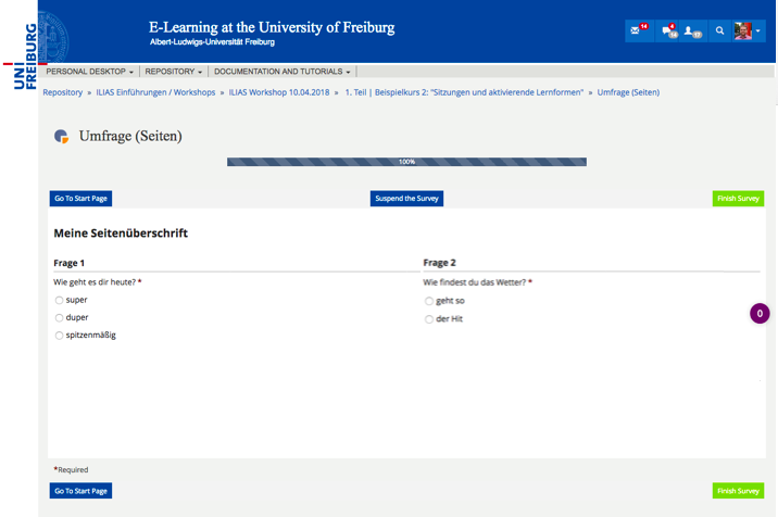Killing, Alexander [alex], 2 May 2018: I think this might me possible, but requires a lot of rework in the survey implementation. The current state of the proposal is not Jour Fixe ready in my view. It lacks any editing screen. Especially the current question table view will cannot continue to work as it does now, since page definition will be done by the page editor. Question sequence determination will also be a big issue, since this is important for all evaluation screens.