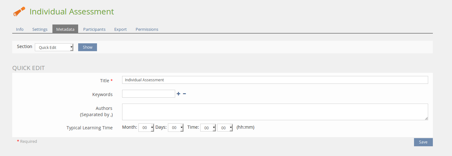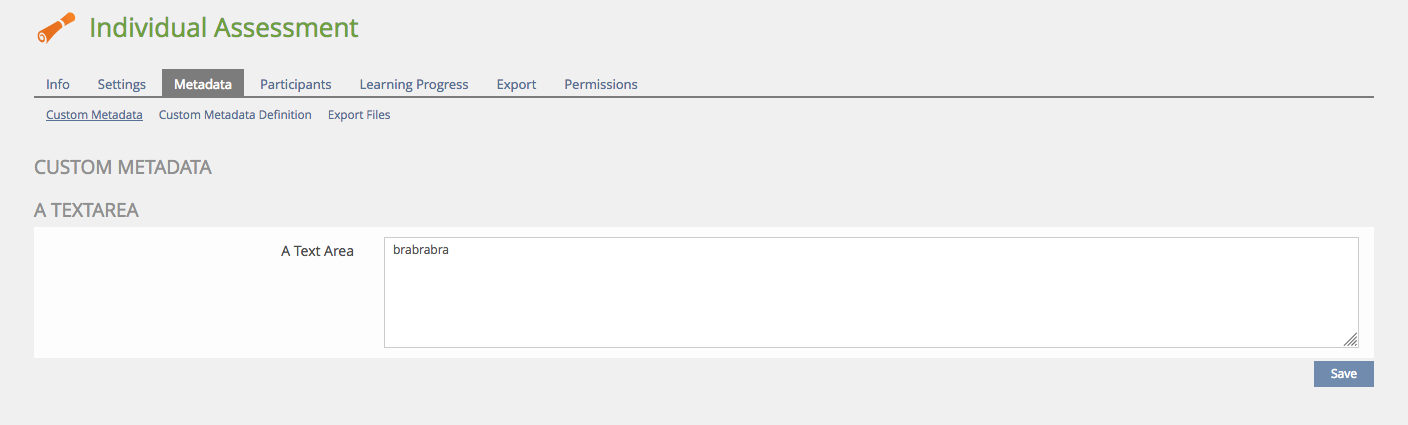 The Individual Assessment should support Advanced Metadata, just like other ILIAS-objects.
