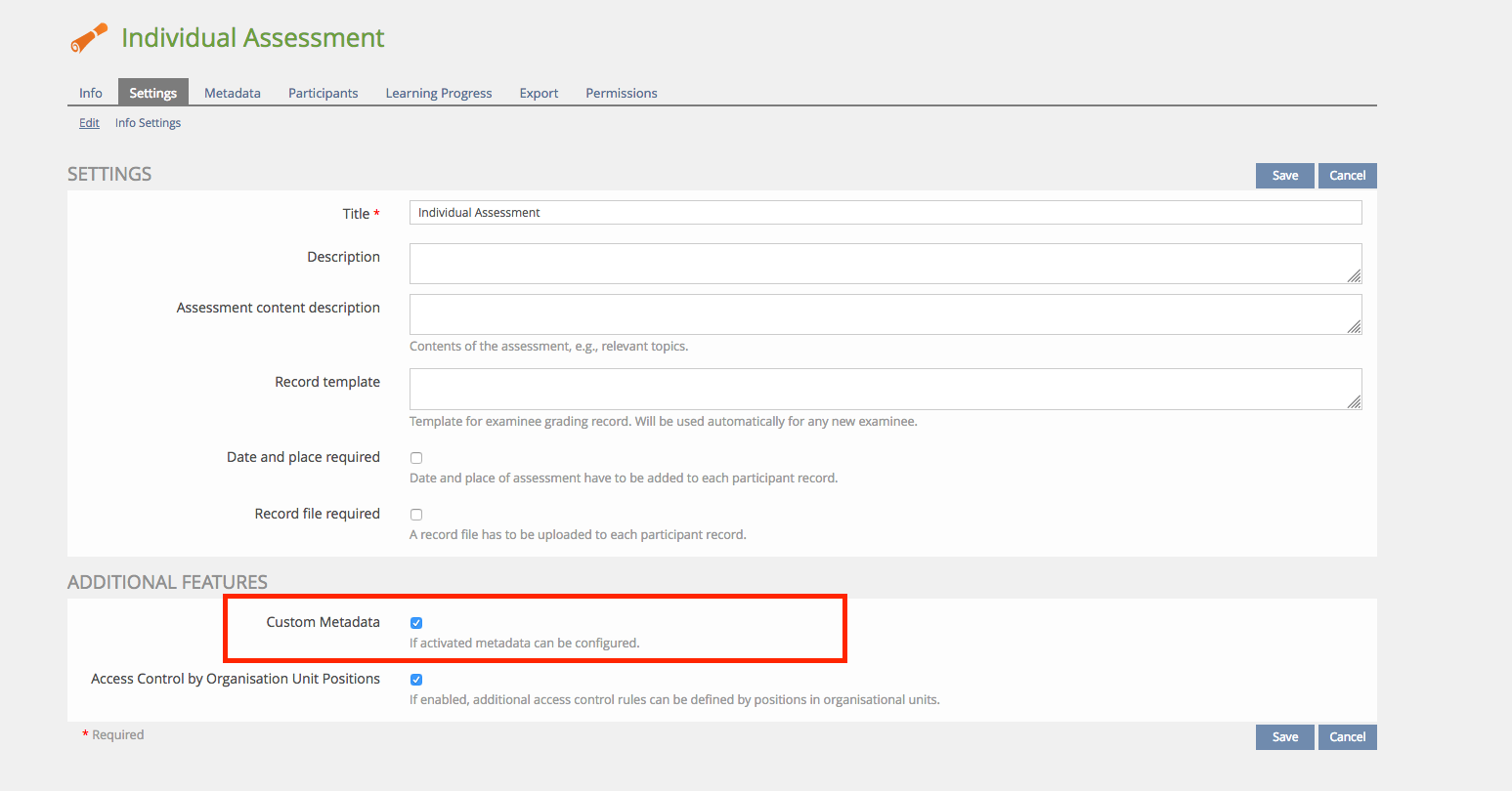 - Individual Assessment > Settings will get a new Option "Custom Metadata".