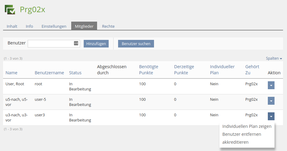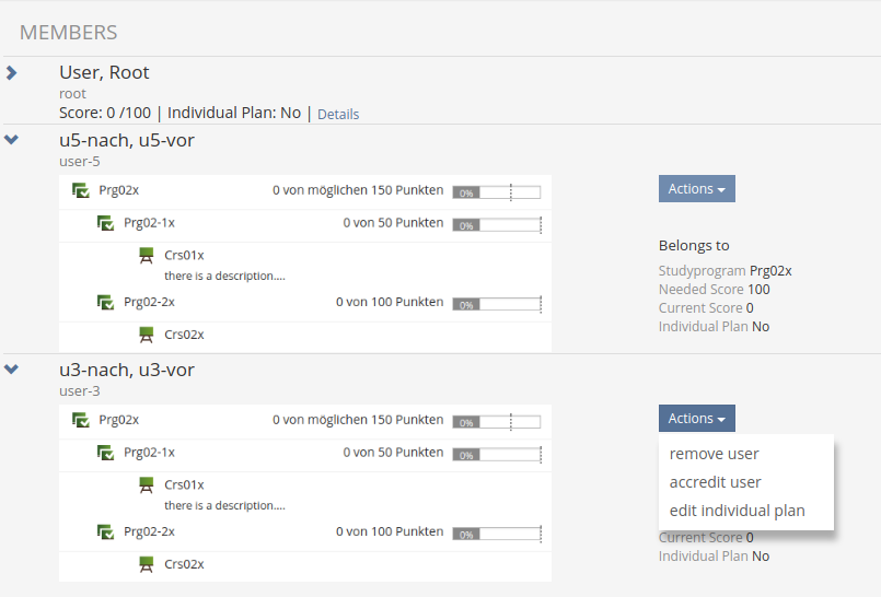 Currently the member-tab of the Study Programme uses a data table to present its members in the memberview, where there is various information attached to each member. The members each have an individual plan, which is opened after clicking an action in the according row. Editing the plan then is possible by switching the subtab again.