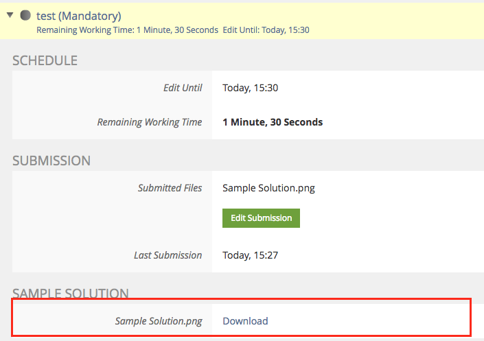 b) Also the user-view (see picture below), where users can download the Sample Solution, needs a modification.