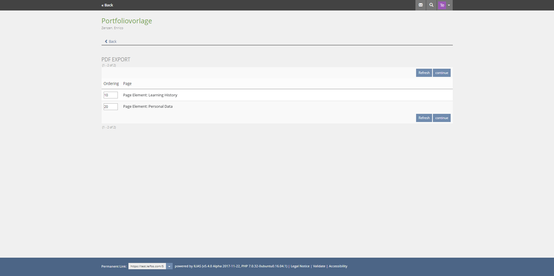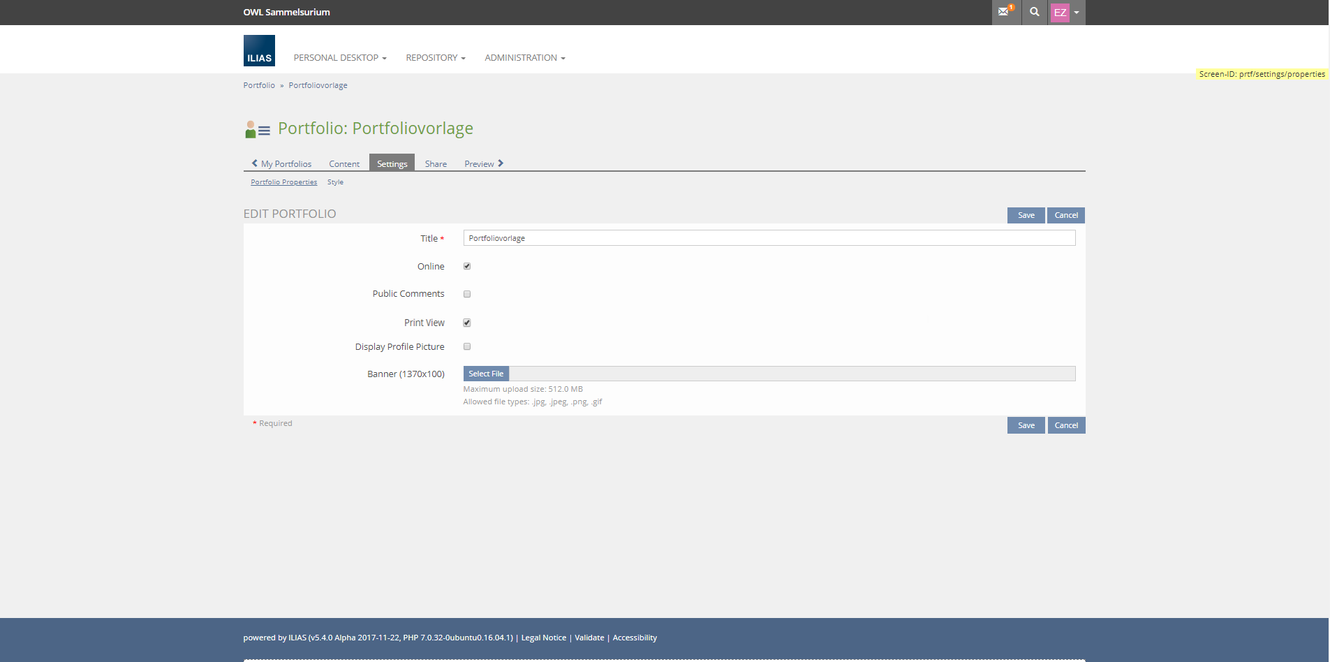 Similar to the settings of ILIAS learning modules, owners can deactivate or activate the print view in the portfolio settings.