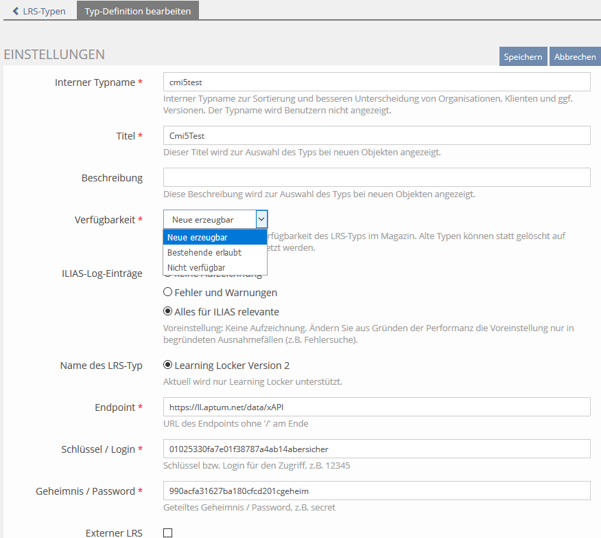- 32134: LRS-Typ und xAPI-Objekt anlegen/bearbeiten mit unveränderlichen Datenschutzeinstellungen