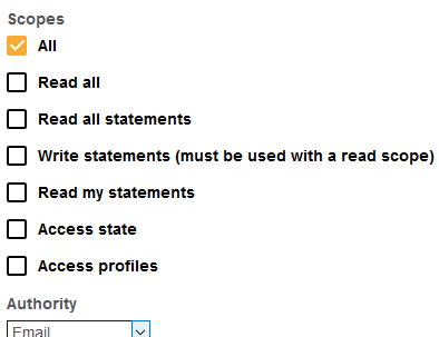 When creating an xAPI object, the LRS client must be selected in a first development step. Instead of LRS client the term LRS-Type is used, as it could also be different LRS.