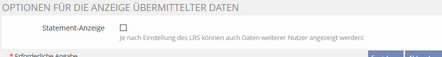 If option is selected a further option to add a link e.g. to Learning Locker Reports is shown. This link gives additonal information to the statement view which is displayed in a separate tab. Until now Users must have the right "View learning progress of other users" to see the statement view and data reports.