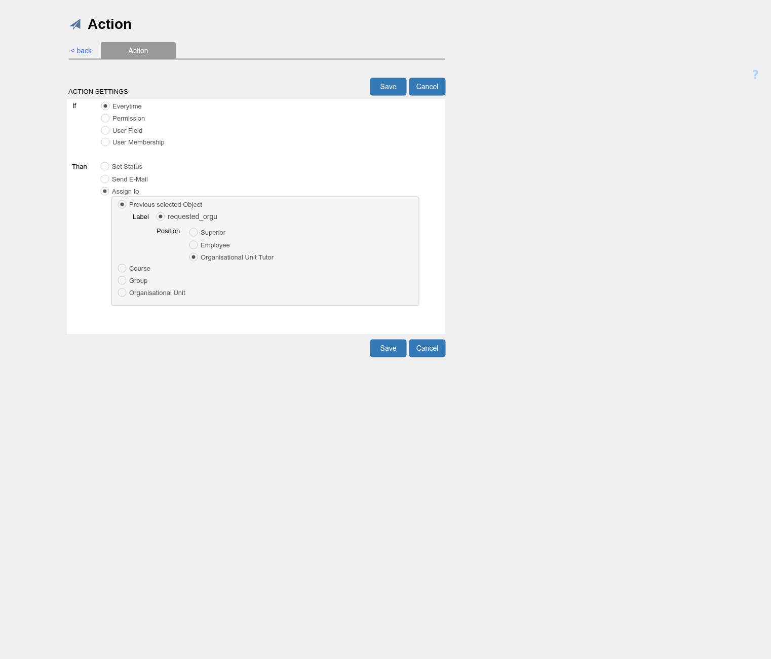 - I would title the "Typ"-Field in the conditions as a "source". Since ILIAS differentiates between Stadard user Datafields and self defined UDFs, both sources should be available. As a new option, I would like to see a rola-membership as a condition source (as well as a target in the event-list, but in some cases we have to avoid circular references here).