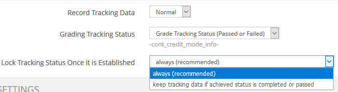 However, I would like to stick to the third option, which is very much in demand at SCORM, with the change that reference is made to learning progress settings. It should therefore read: 'Freeze Learning Progress' with the options 'never (recommended)' and 'if ILIAS status is completed (green)'.