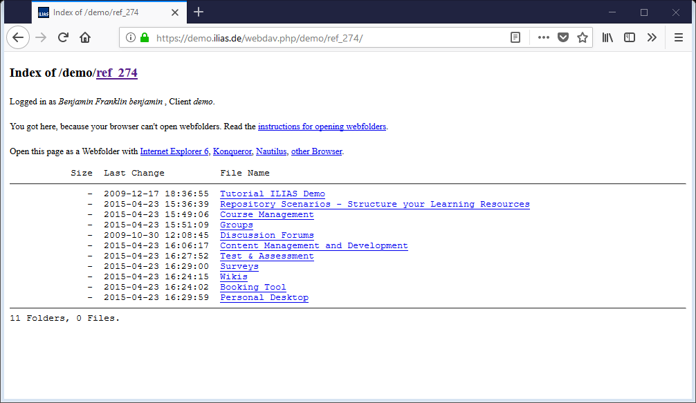 If you want to test this, open https://demo.ilias.de/webdav.php/demo/ref_274/ in your browser and enter some login information from the iliasdemo user accounts.