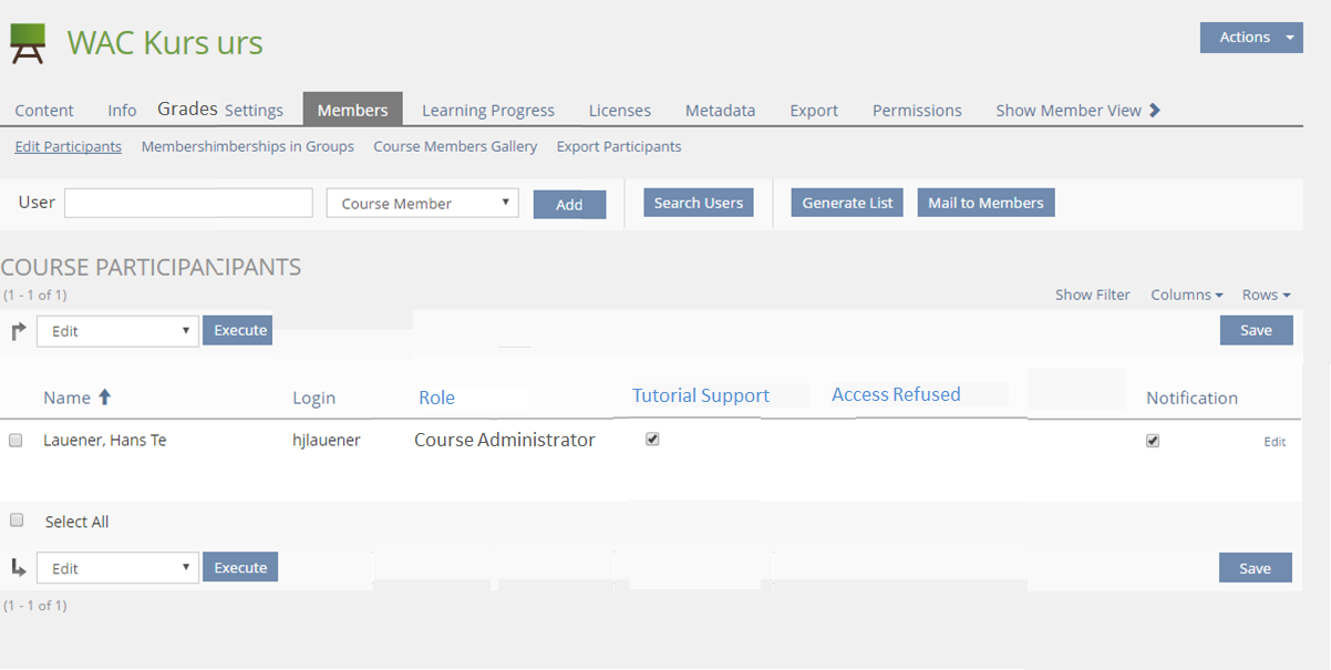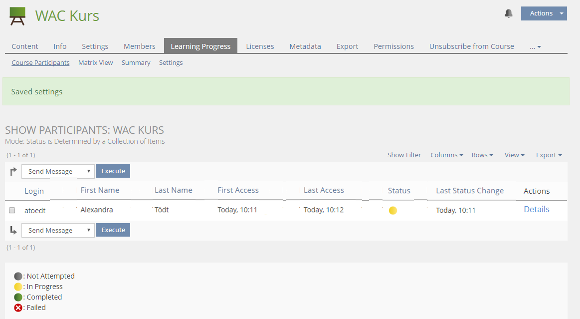 - the Mark and Comment and "Set to completed" behin the "Edit" Action in the Learning Progress. Yet the Mark and the Percentage are displayed in the table before.