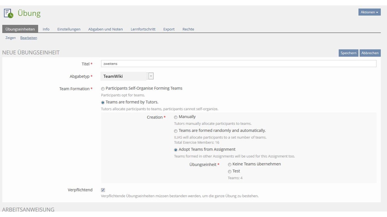 Option for team foramation, if there are preexisting teams. e.g. from "Datei als Team".