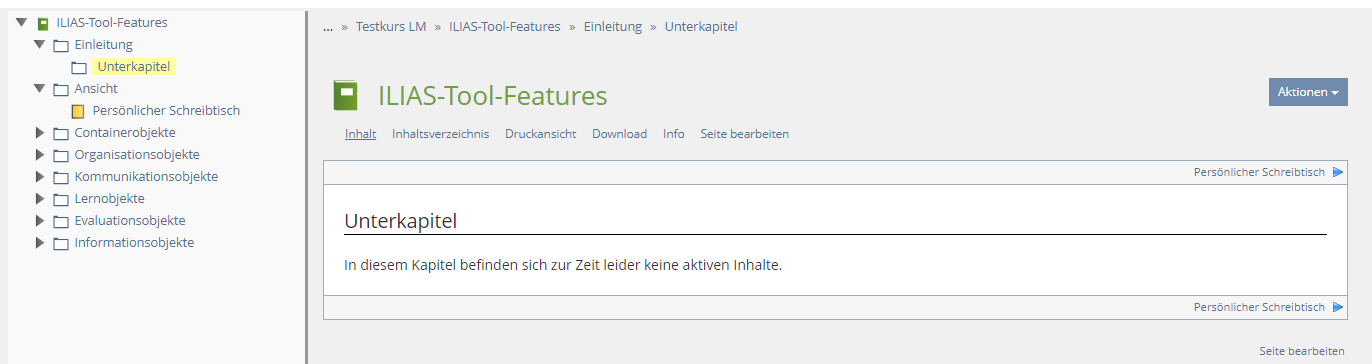 When deactivating all pages of a chaptre, the chaptre remains visible in the tree of an ILIAS learning module. After clicking on the chapter with deactivated pages a message is shown "Sorry, but there is currently no activated content within this chapter.".