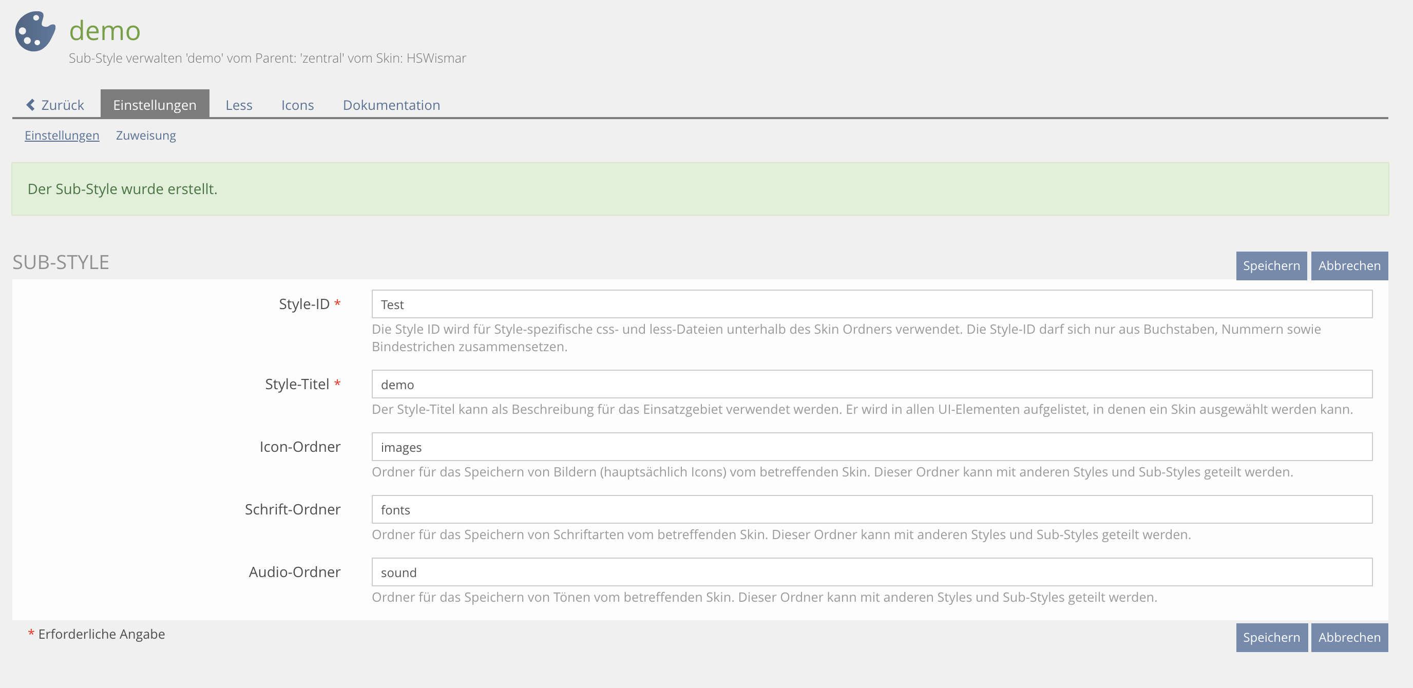 When you start to create a substyle from a parent style, ILIAS offers delos values again instead of the values of the parent style. It would take a lot of time to compare and to copy and paste the values in order to design a substyle that fits into the parent style design.