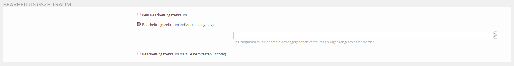We might want/need a new input field to define periods like "2 weeks" "11 days" or "3 months" to configure the individual processing time properly.