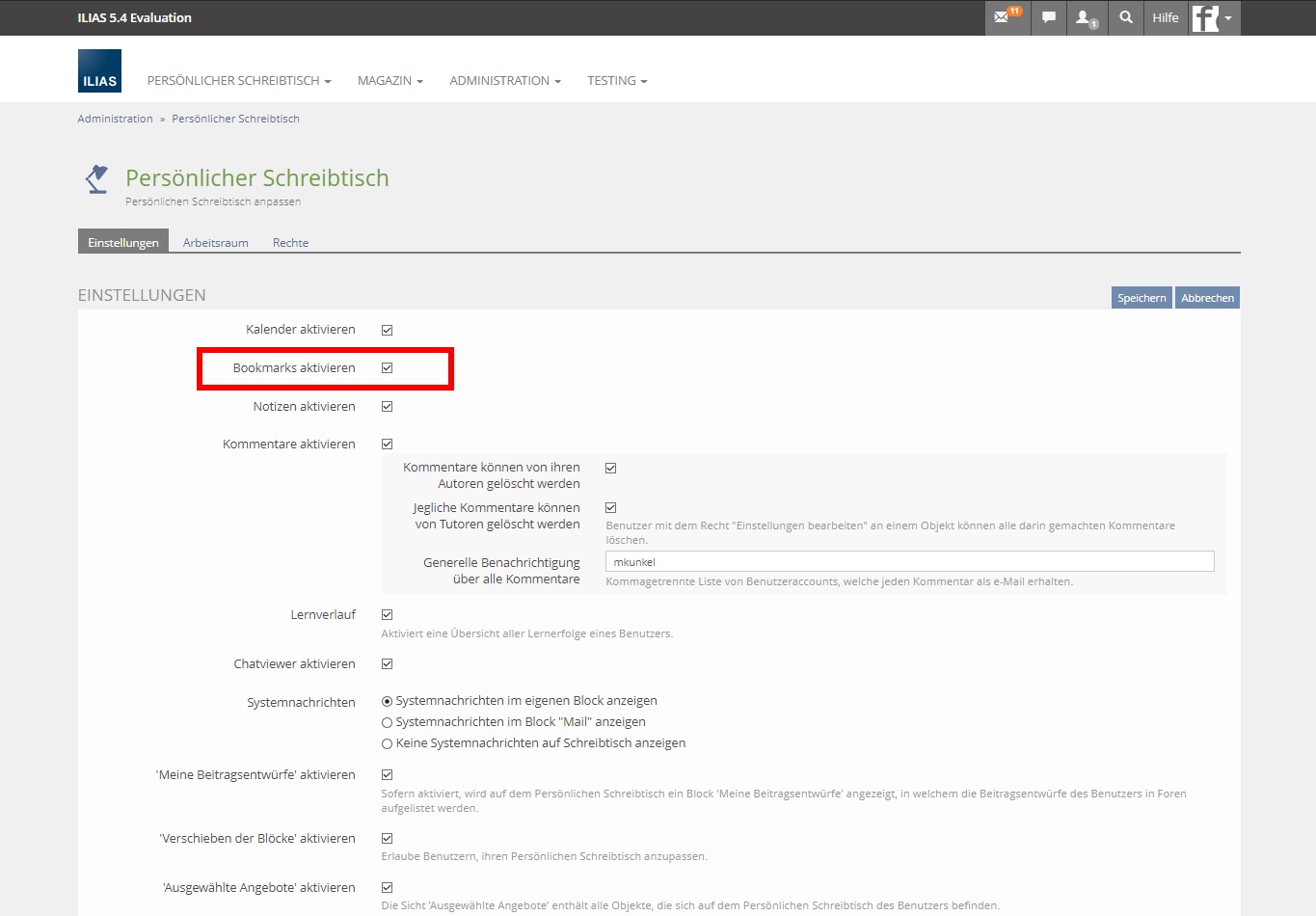 "Bookmarks" are rarely used feature in ILIAS. Learners are used to manage and share their bookmarks to other websites via the browser or other means.