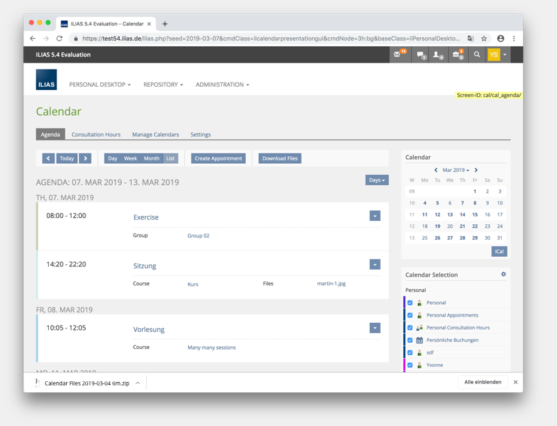 With feature Download Files from Calendar, it is possible to download large amounts of files that are available via sessions in the calendar. The Background Task is used in the process to bundle the large amounts of data.