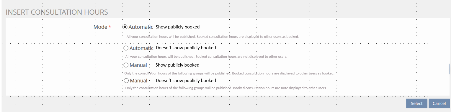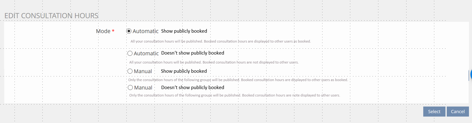 - Portfolio --> INSERT CONSULTATION HOURS & EDIT CONSULTATION HOURS: Enhancement by the option to display the booked consultation hours or not. Add: