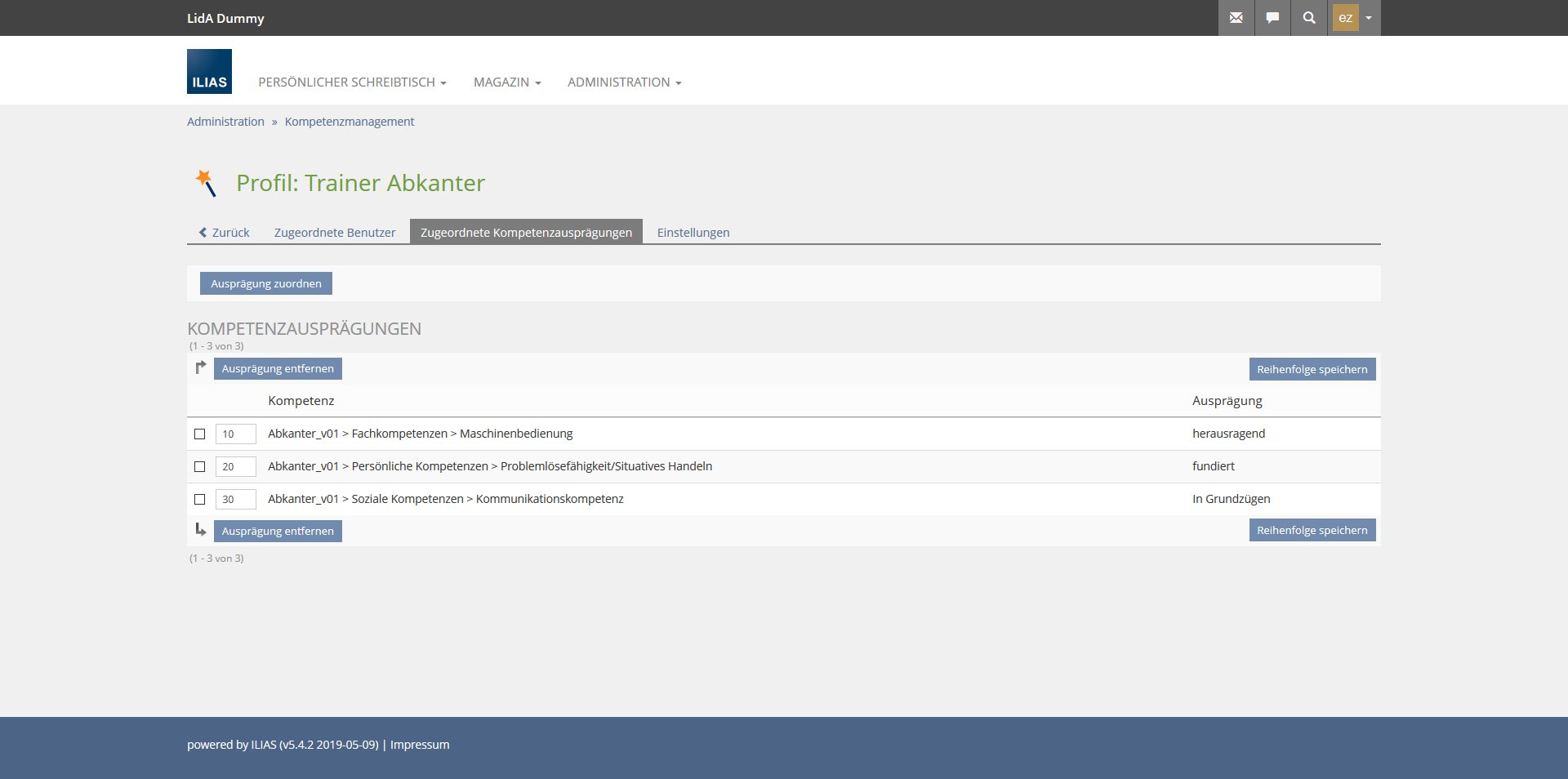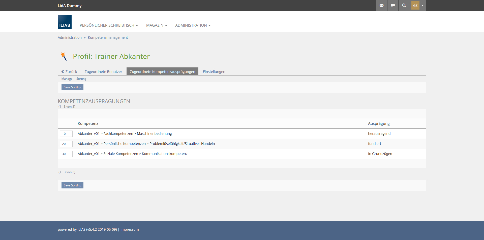 - C12714: Kompetenzausprägungen in Profilen sortieren