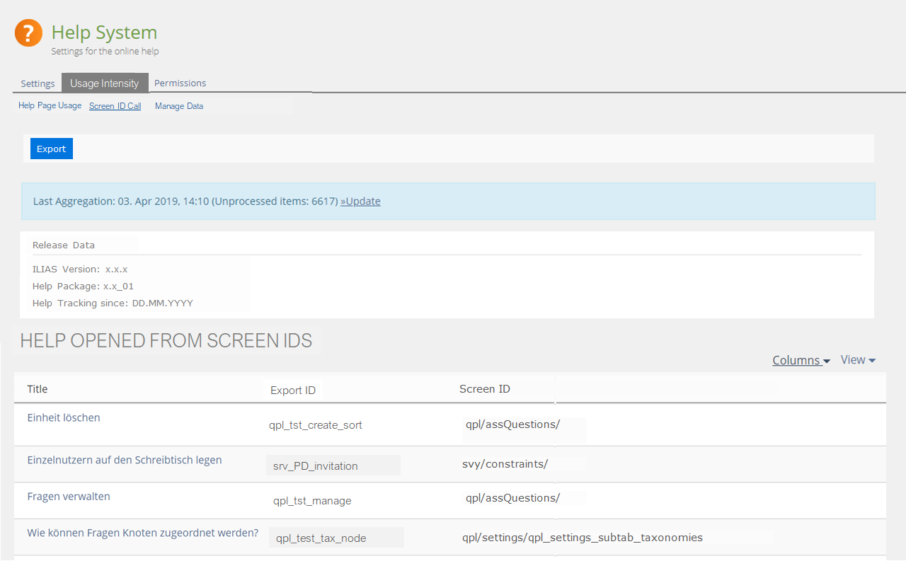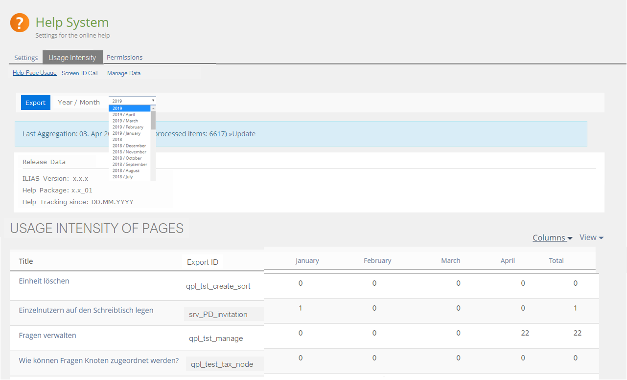 JourFixe, ILIAS [jourfixe], 12 AUG 2019 : We highly appreciate this suggestion and schedule the feature for 6.0. Please add a filter on the screen "Help Page Usage" that allows to filter for "Title", "Chapter" and "Screen ID". This will make this feature even more helpful.