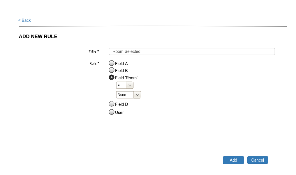 A rule consists of a field, an operator and a value (e.g. 'field x = 123'), and has a title for better readability.