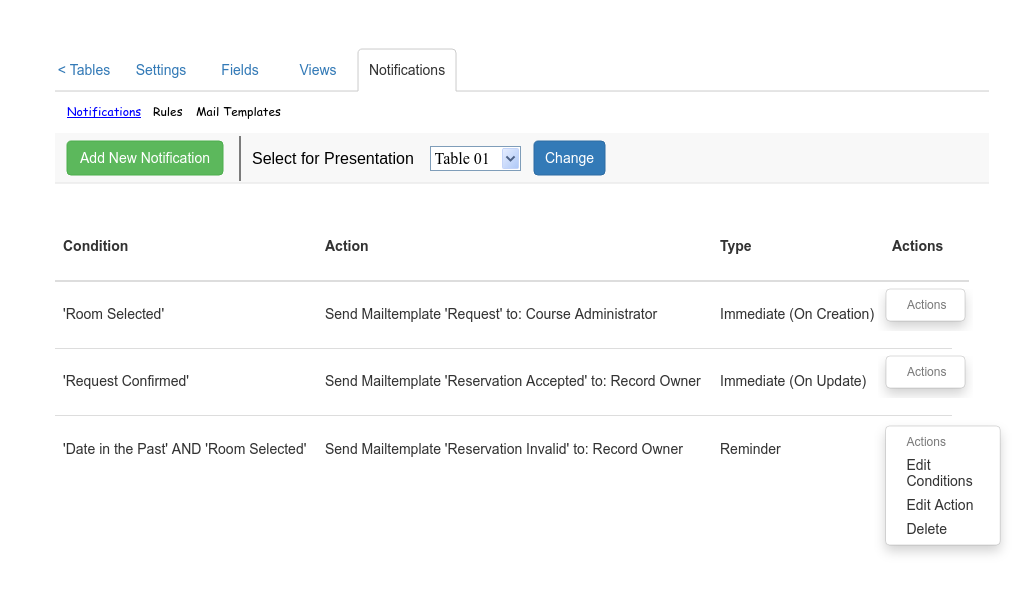 All provided mockups are completely new views. The only modification on existing views is the additional "Notifications" Tab in a tables "Settings", "Fields" and "Views" view.