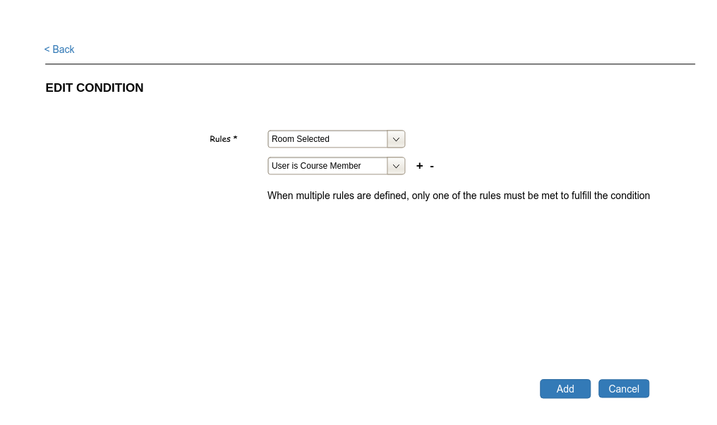 - A condition consists of one or multiple rules and is considered fulfilled if one of its rules are fulfilled ('OR'-condition).