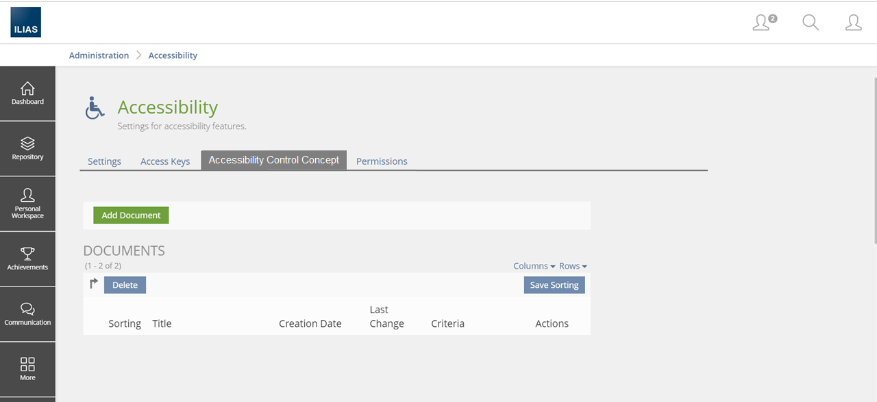 - Users get no information about the control concept of ILIAS and how it is operated using assistive technology.