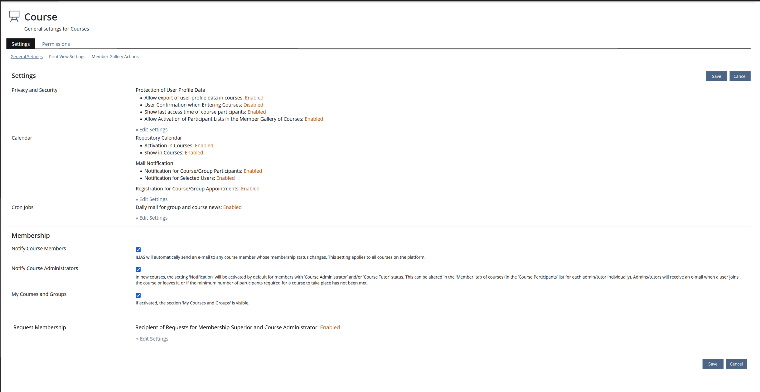 - This is mirrored in Administration > Courses with an "Edit Settings" Link