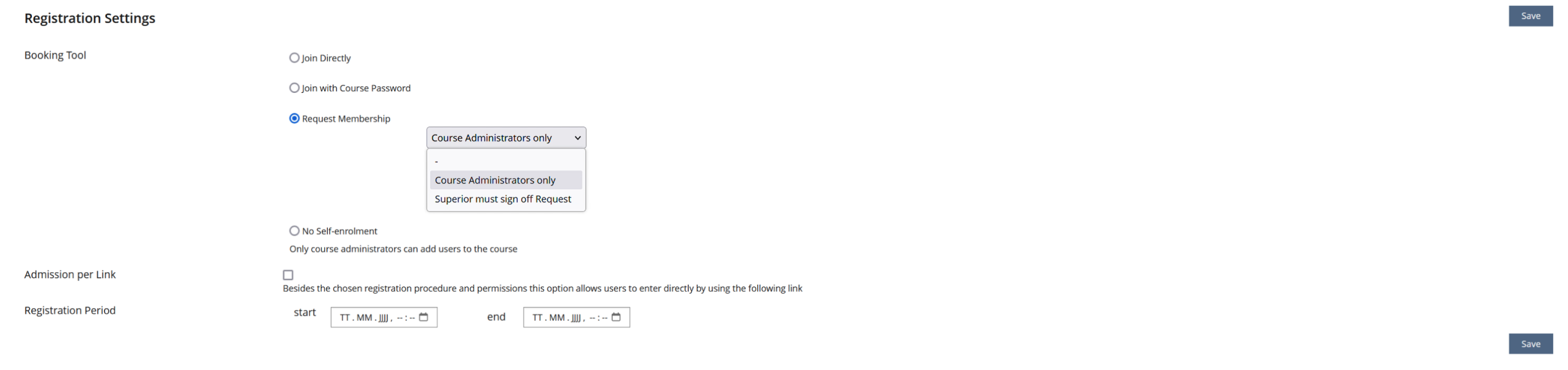 - In Organisational Units in the Administration if Positions in Courses are activated, administrators can activate that a new option is offered for "Request Membership".