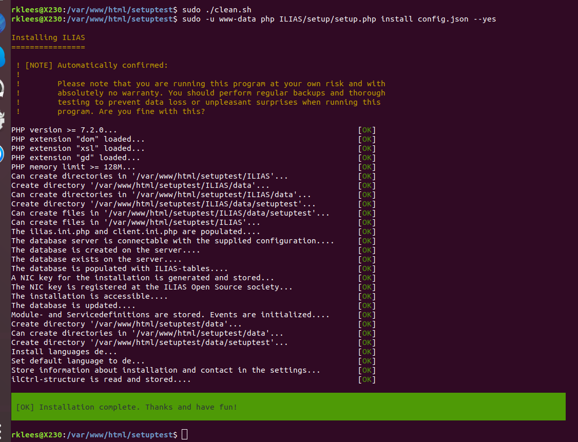 There is a lot of value hidden in the setup that would be uncaged by having a setup that could be completely automated. A completely automated setup will have benefits for testing, whether manual or automated, will simplify the work of developers, old and new, and will also simplify the work of hosting providers when setting up and maintaining their ILIAS instances.