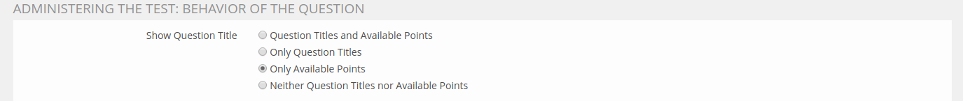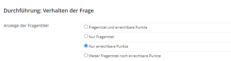 Weber, Jens [jens.weber] 1. Sep 2022: Also cf. "Konzept- und Implementierungslücken im T&A – Testeinstellungen: Anzeige der Fragetitel - nur erreichbare Punkte" / https://docu.ilias.de/goto_docu_dcl_11004_228_7116.html)