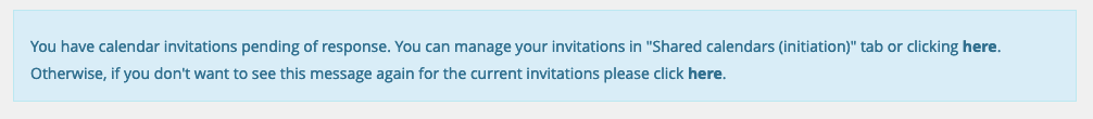 You have calendar invitations pending of response. You can manage your invitations in "Shared calendars (initiation)" tab or clicking here.