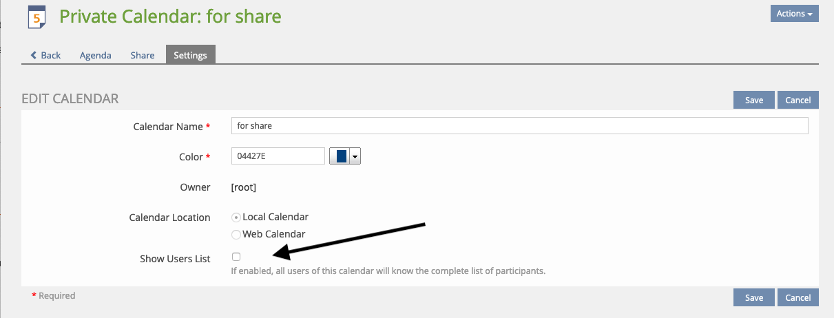 Create a new calendar setting to activate/deactivate the option "Show users list".