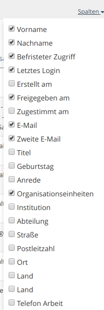 - The possibility to show and hide columns