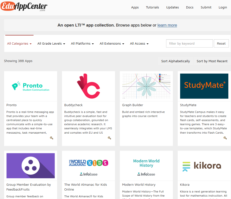 Using the example of https://www.eduappcenter.com/ it can be seen that there are a large number of LTI providers available and the offer shows an example of how to sort and filter LTI providers. But additional information regarding type, Outcome Service and hosting should be displayed.