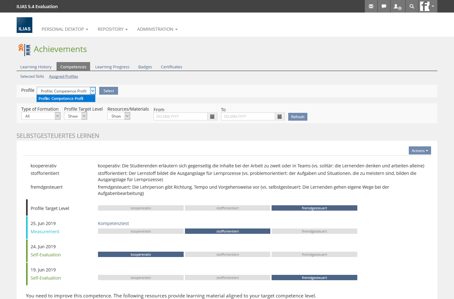 JourFixe, ILIAS [jourfixe], 23 SEP 2019 : We highly appreciate the removal of the competence dropdown when only one competence is available.