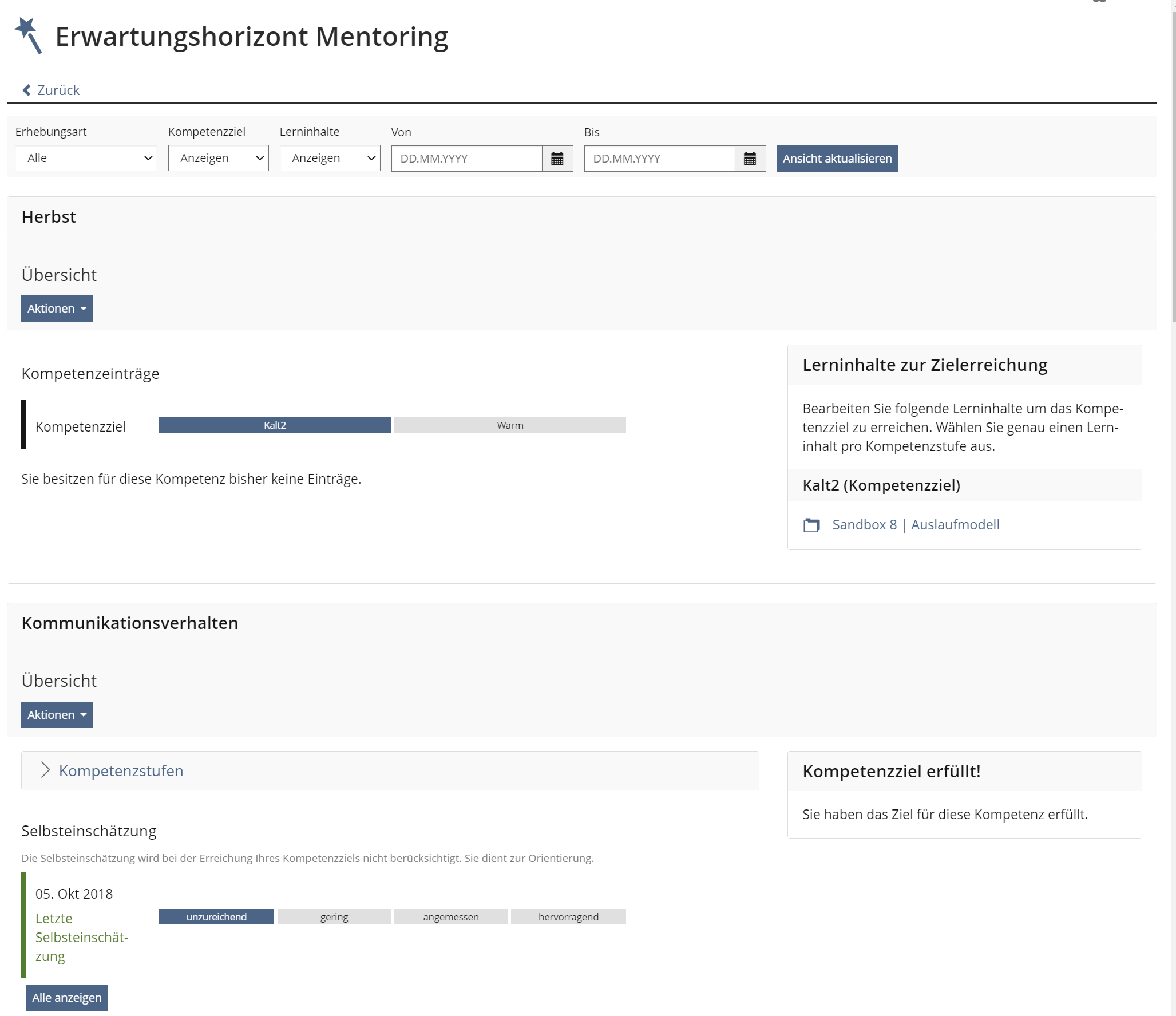 - When a user has reached a competence level below the target level, the learning materials for this level will vanish. As soon as a user has reached the target level, a success message is shown instead of the learning materials.