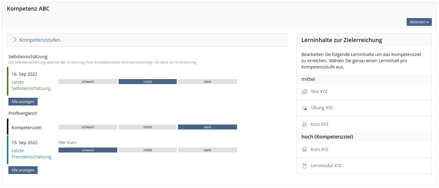 In a competence profile, only those learning materials are recommended that have been assigned to the profil target level. All other learning materials, including those assigned to lower levels, are not displayed.