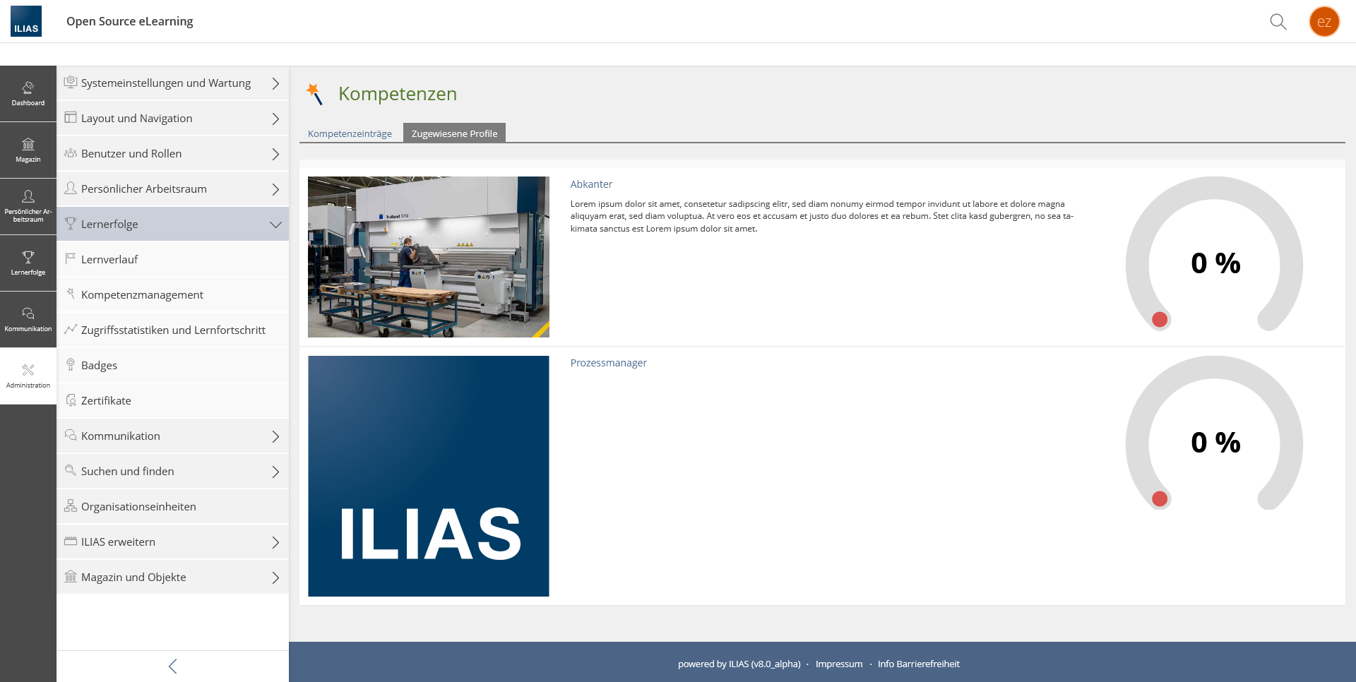 - Option B: If an image was uploaded for a competence profile, it will be displayed in the Item. If no image was uploaded, just the title and the description of the profile are shown. That would mean Items with and without a lead image are mixed in the Standard Panel. But the consequence would be that Items (i.e. profiles) without an image can be quickly overlooked, especially if they also have no description and only a title.
