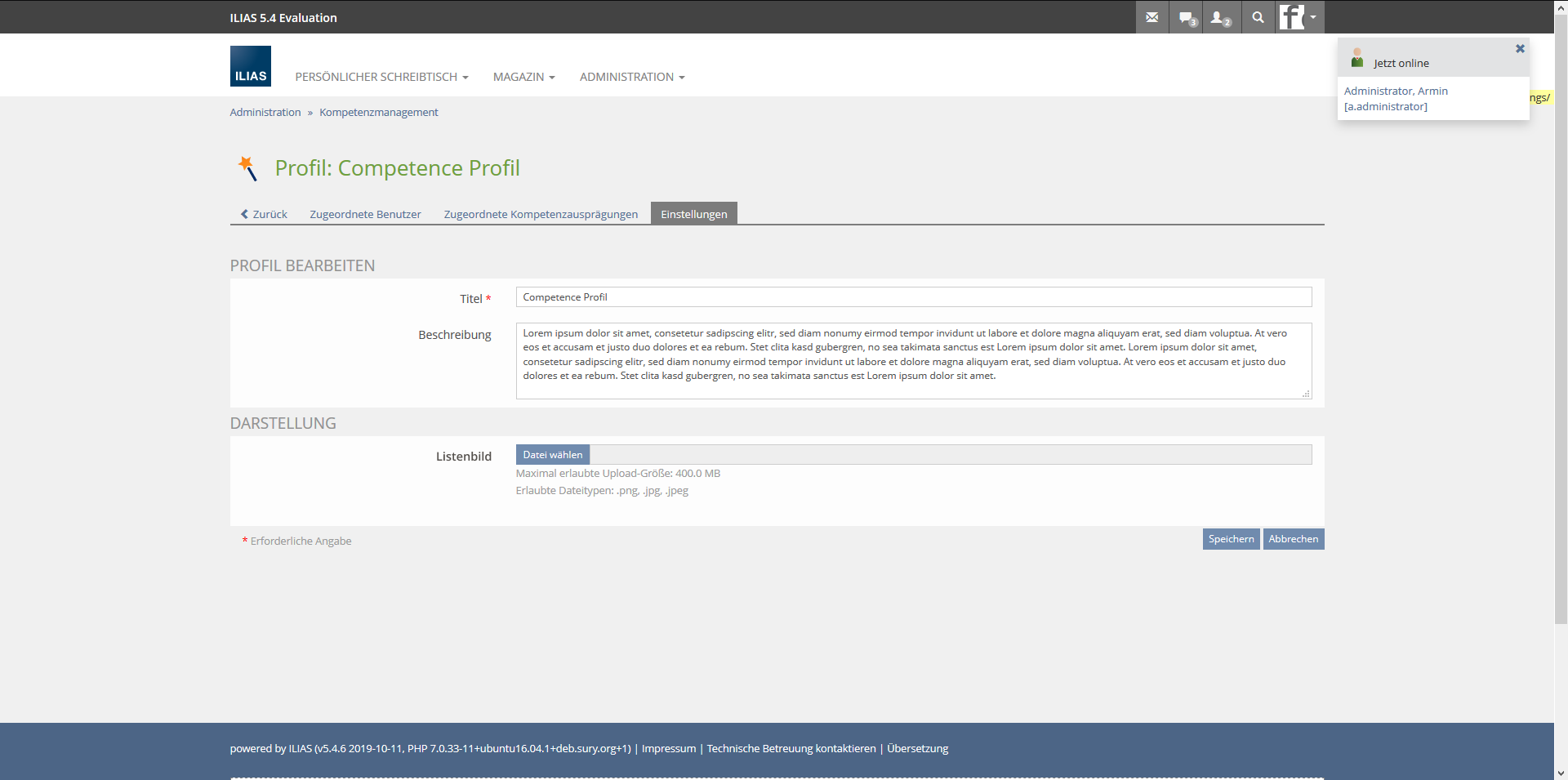 - Administration >> Competence Management >> Profile >> Edit Profile XY