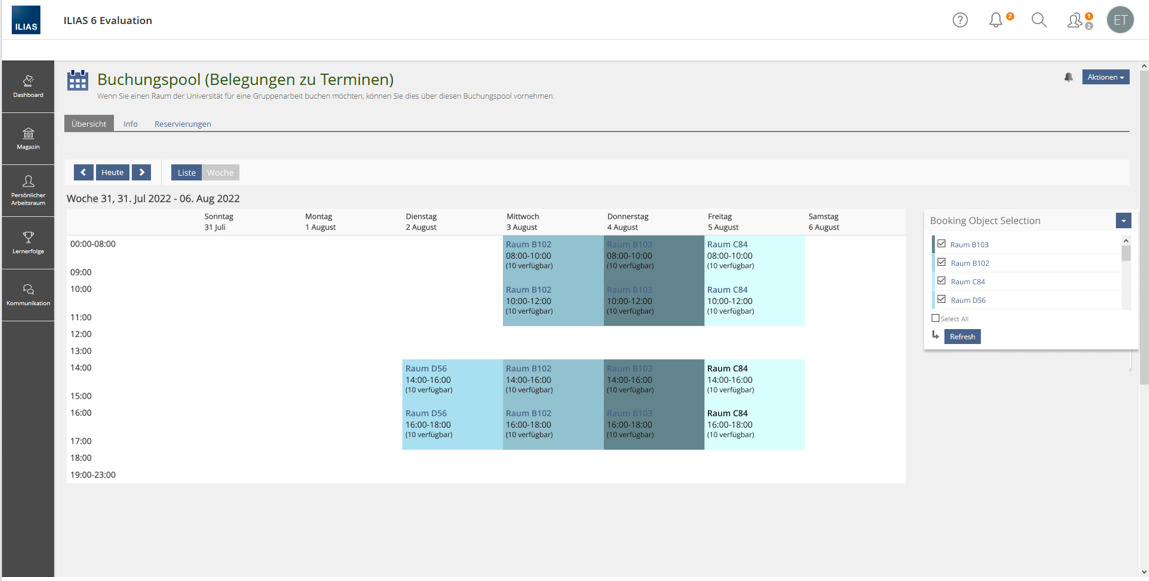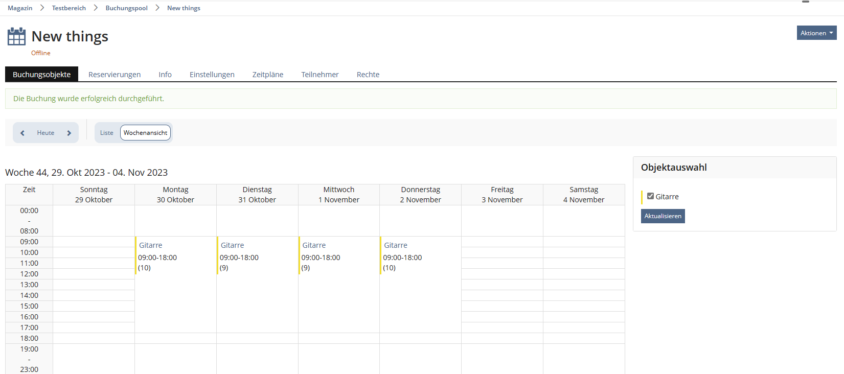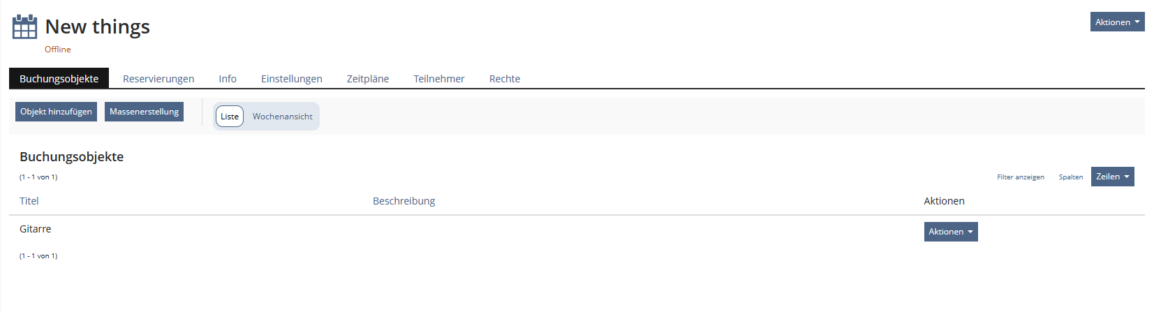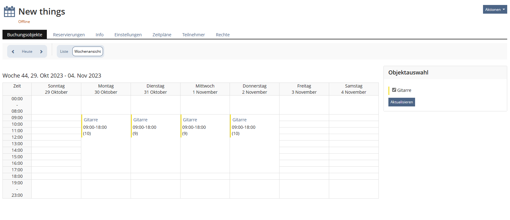 To enable users to see at first glance WHICH booking objects are available WHEN, a week overview with multiple booking objects should be introduced.