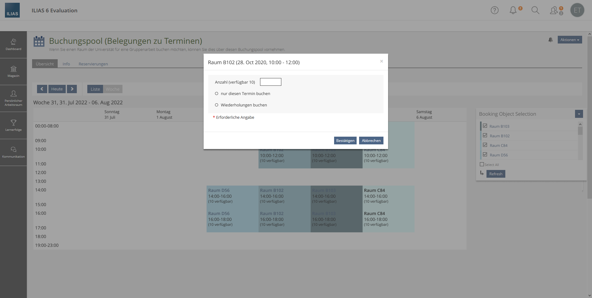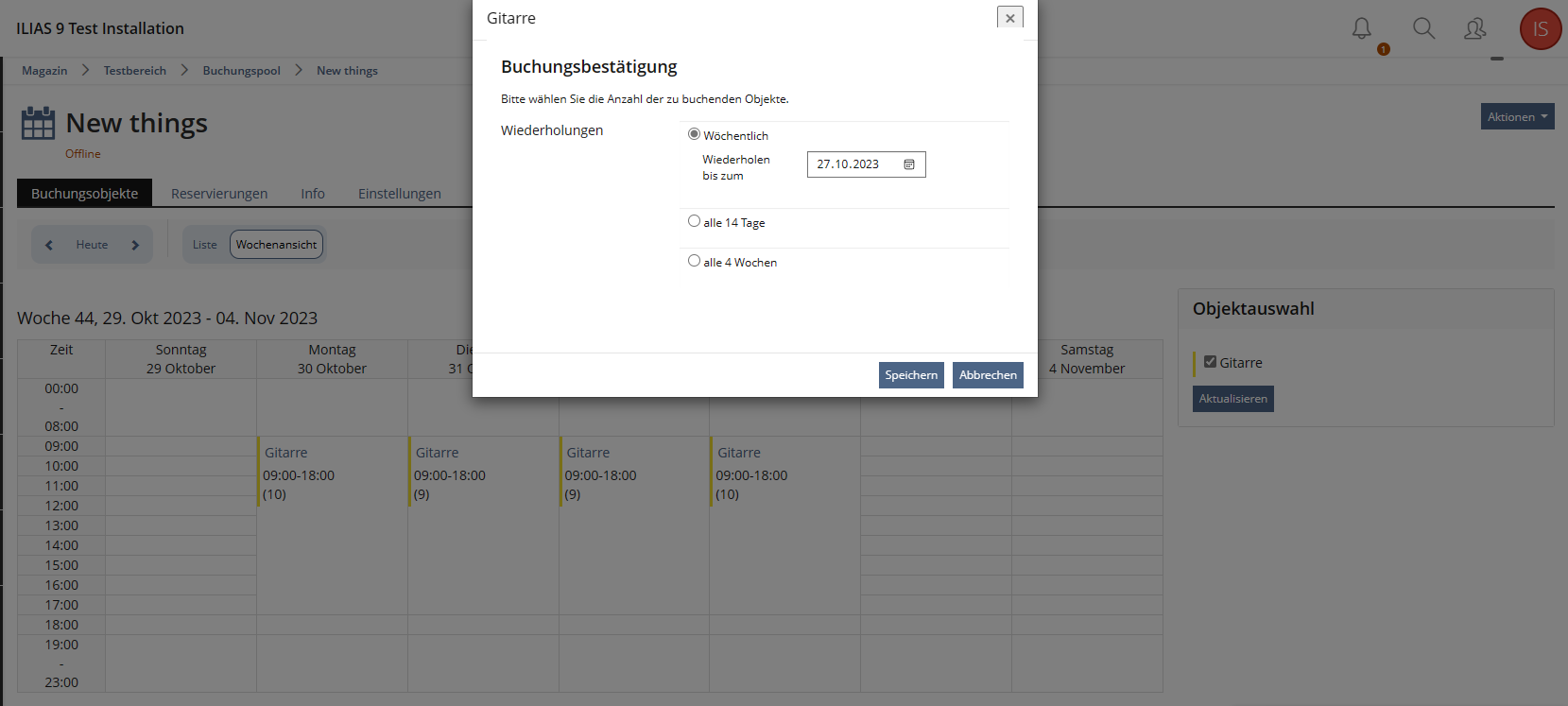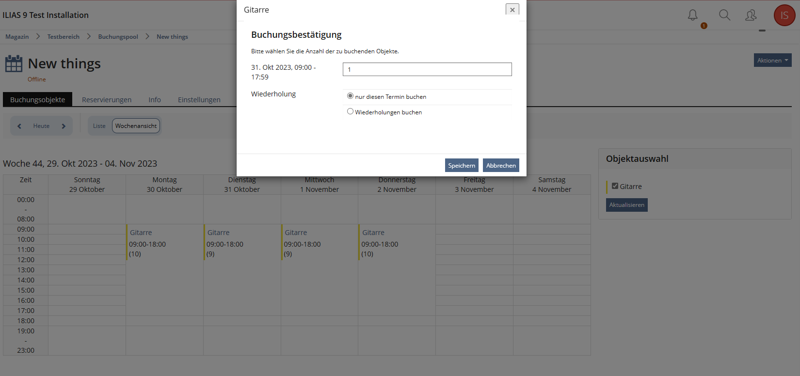 - Users can now specify the number (if set) of objects to be booked. You can also specify whether you want to book only this date or repetitions.