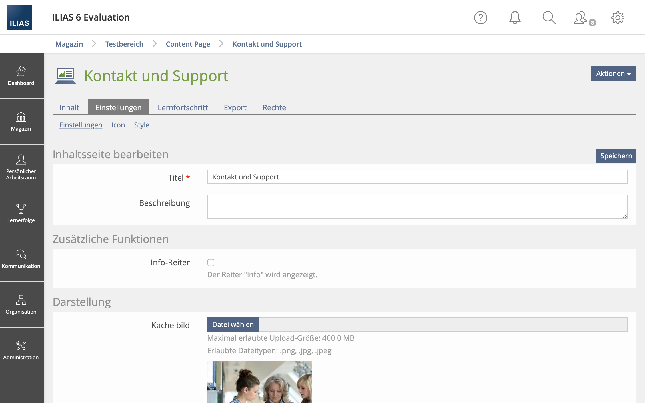 Kurs, Gruppe, Studienp, Kategorie, Ordner,, Lernsequenz