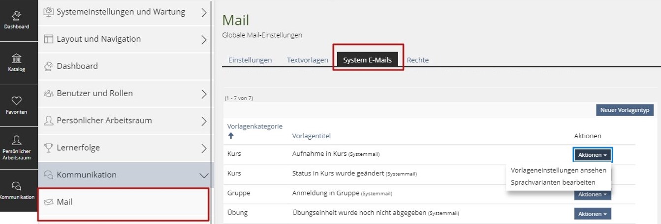 It is very uncomfortable to adjust mail texts and their layout. For this reason, a central area in ILIAS is required to maintain system mails.