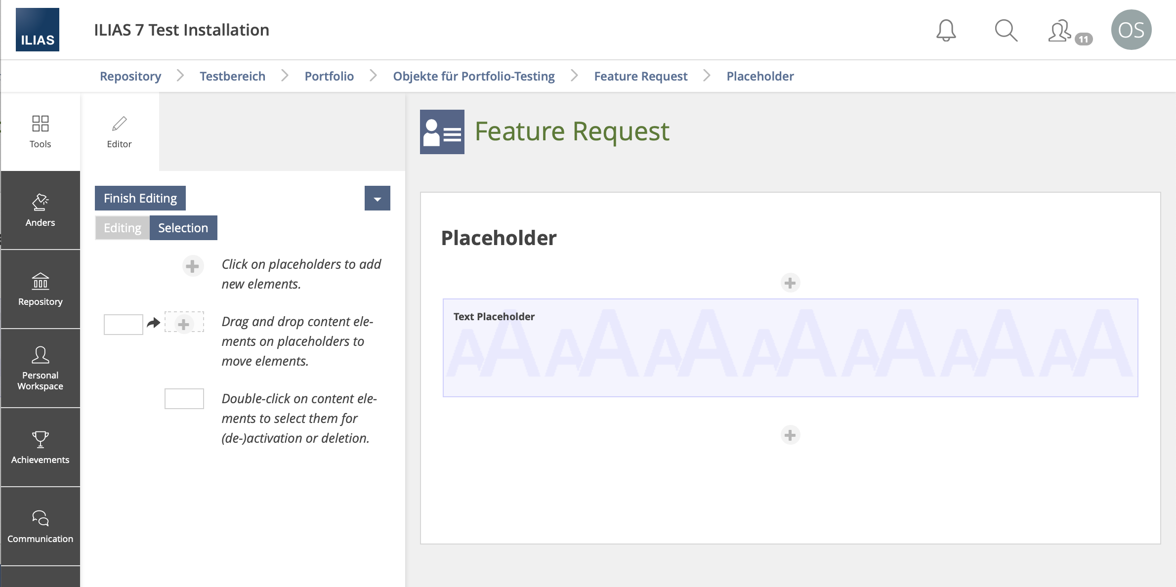 The Portfolio and Portfolio Template supports some other page elements that exist only in their context. In some cases, content is also provided by other components of ILIAS, which update automatically.