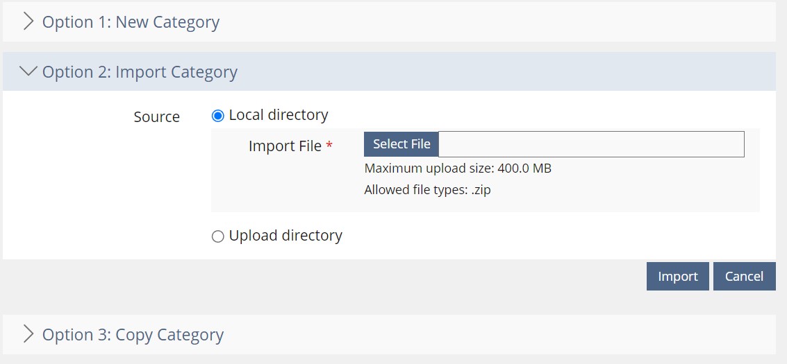 - User selects "Option 2: Import Object Type" and uploads xml.zip of export-file.