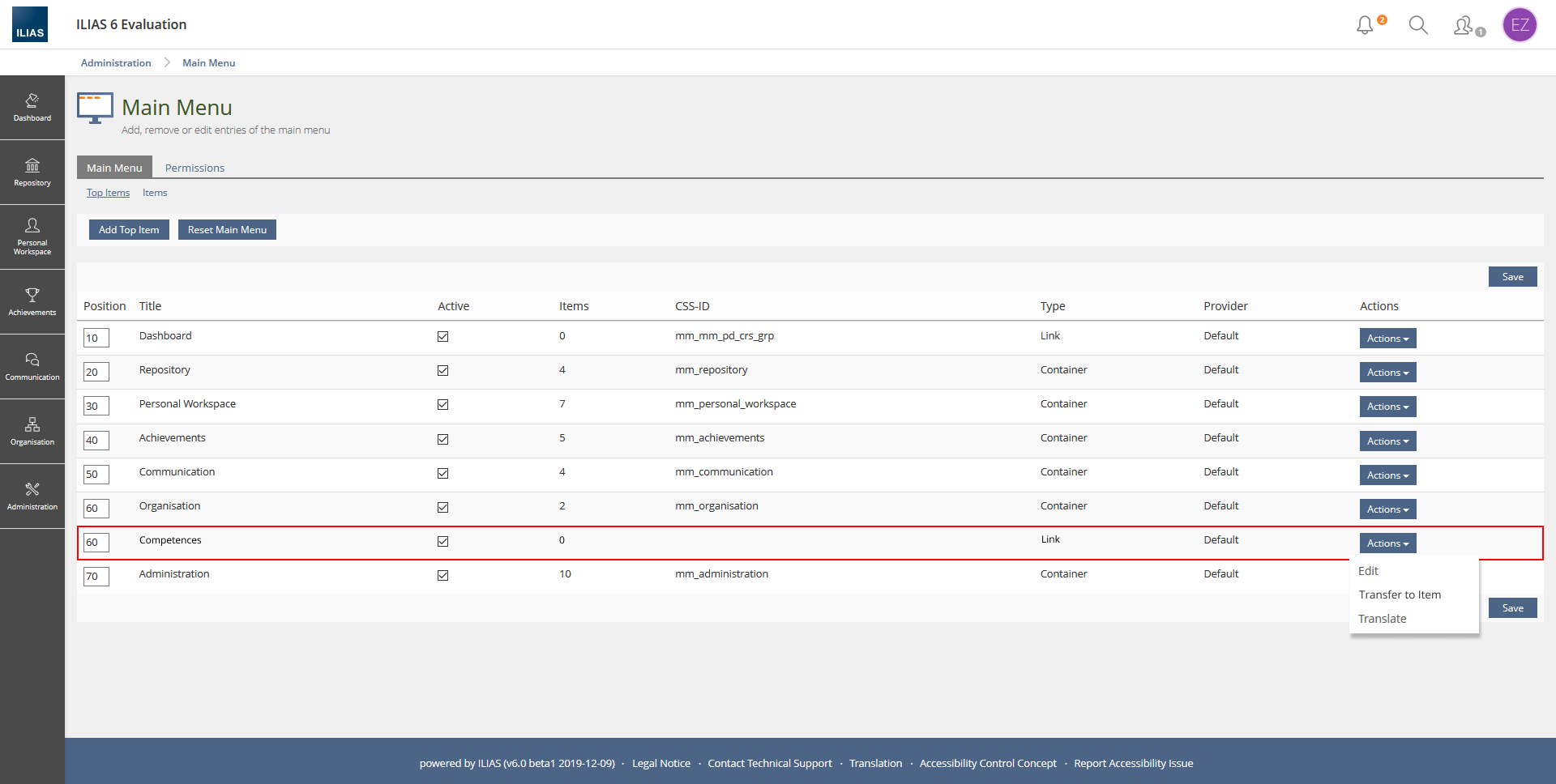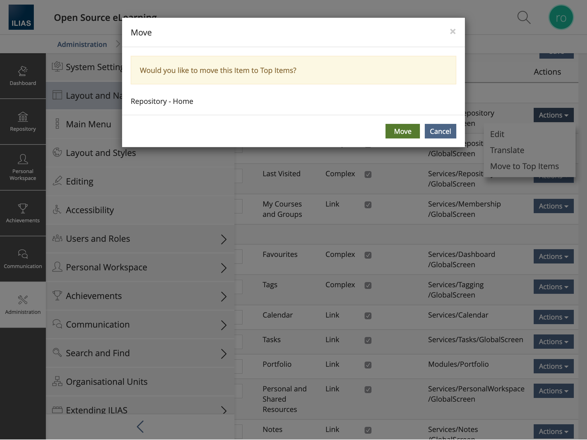 - If users click on "Transfer to Top-Item", the item is transferred to the top menu level according to the mapping.