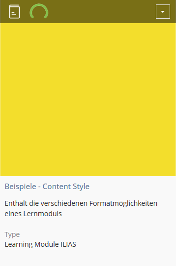 - The Progress Meter behaves as in ILIAS 6. statuses "Not Attempted", "In Progress", "Completed" and "Failed". Only the status "Not Attempted", "In Progress", "Completed" and "Failed" are displayed.