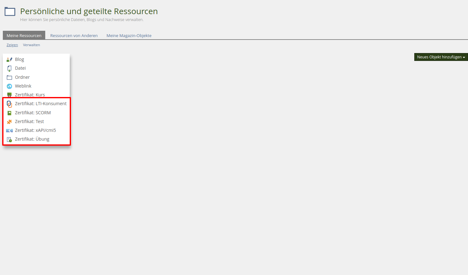 - Zertifikat: Kurs hinzufügen